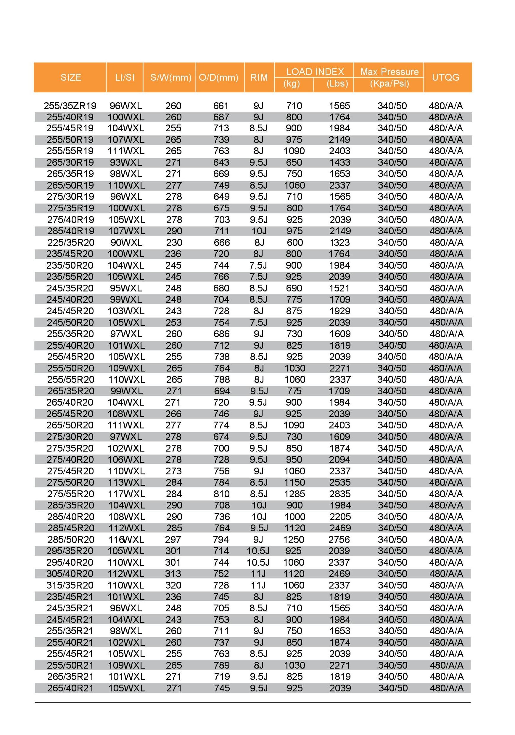 The outer wide groove design and the inner narrow groove design provide excellent drainage performance and improve the tire's wet handling performance.
